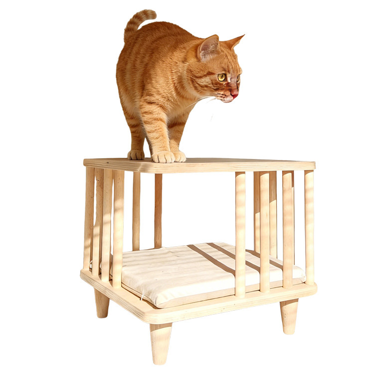 The Cat Bed End Table is a modern, elevated wooden pet bed designed to combine pet comfort with home décor. Crafted from natural solid wood with a slatted structure, it offers a cozy resting space for cats or small dogs while functioning as a stylish side table. Its minimalist design integrates easily into contemporary interiors, making it both a practical pet accessory and an attractive furniture piece.