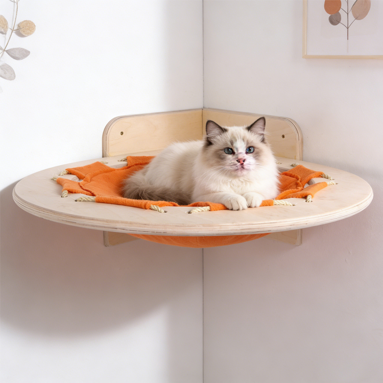 The Cat Corner Hammock is a wall-mounted wooden cat shelf designed to fit neatly into room corners, creating a secure and elevated resting space. Featuring a solid wood frame and a soft fabric hammock, it combines durability, comfort, and modern aesthetics. This space-saving design makes full use of vertical wall space while offering cats a cozy perch to relax, sleep, or observe their surroundings from above.