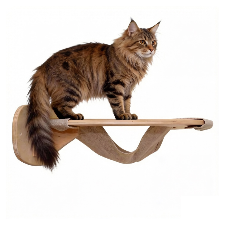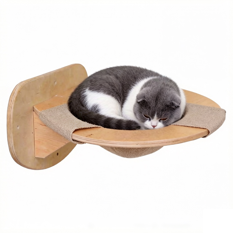 This Cat Hammock Wall Hanging (a wooden wall-mounted cat hammock shelf for small apartments) is designed to give cats a cozy elevated spot to rest, play, or observe. As a professional manufacturer, we welcome bulk orders from wholesalers and B2C seller,and also offer customization to tailor the product to your specific needs—combining sturdiness with space-saving practicality.