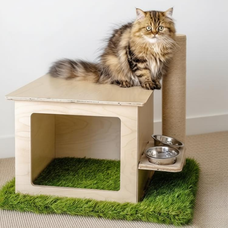 This modular Cat Scratcher House, crafted by an experienced manufacturer, integrates a cozy hideaway, durable sisal scratching post, and elevated feeding station into one minimalist plywood design. Made of pet-safe plywood with smooth, non-toxic finishes, it encourages natural cat behaviors (scratching, resting) while saving home space. Suitable for cats up to 15 kg, it balances functionality and modern aesthetics for daily use.