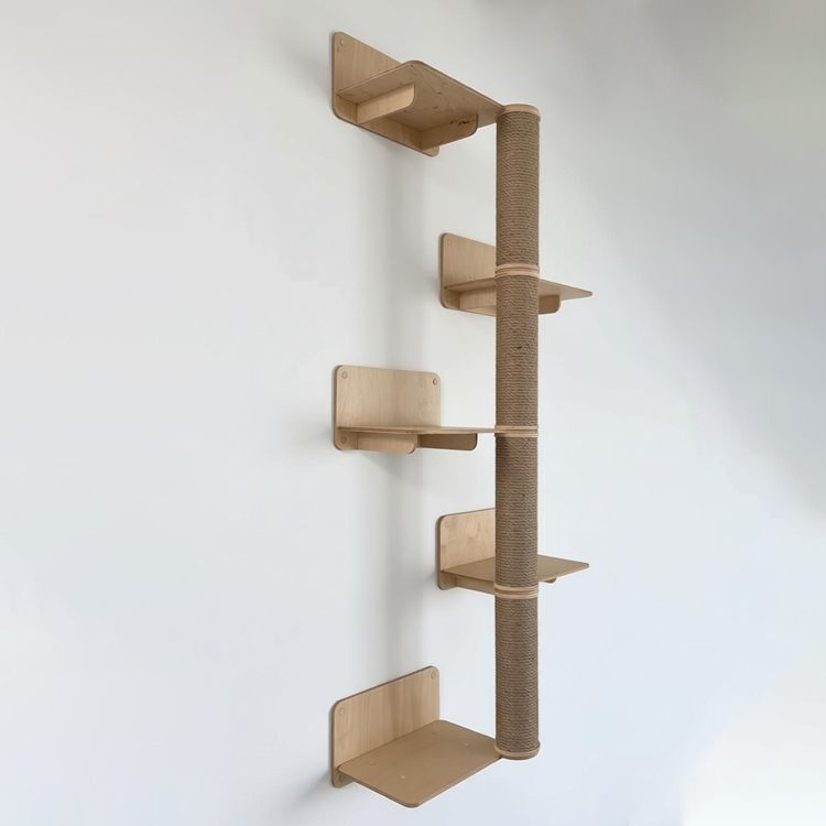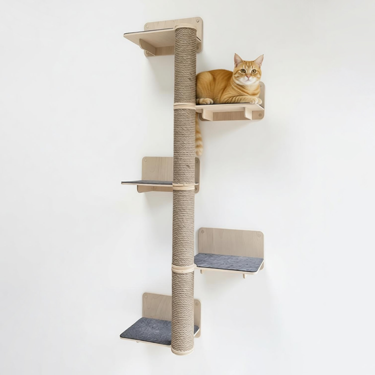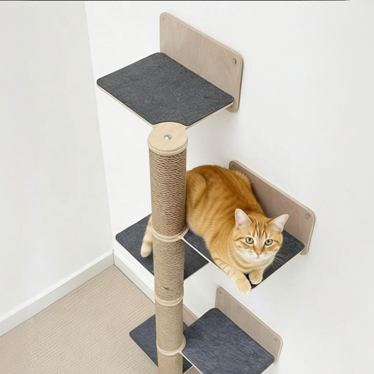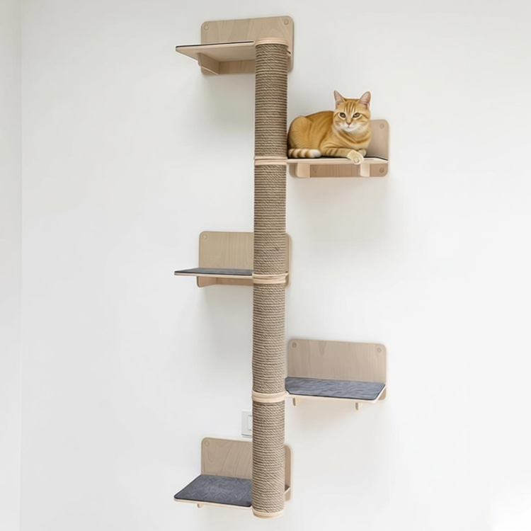 This 5-Tier Wall-Mounted Cat Tree Shelf is a complete activity center for cats, combining scratching, climbing, and lounging into one space-saving unit. As a professional manufacturer, we offer this popular design at competitive factory prices, with options for bulk orders to meet the needs of wholesalers and B2B clients. Its vertical design maximizes wall space, making it perfect for modern homes, while the durable construction ensures long-lasting use.