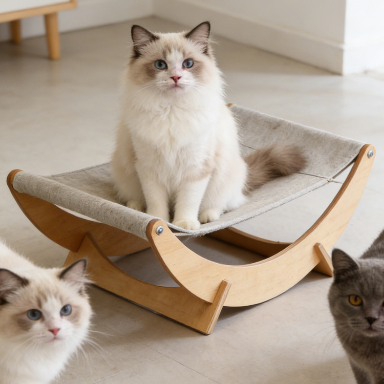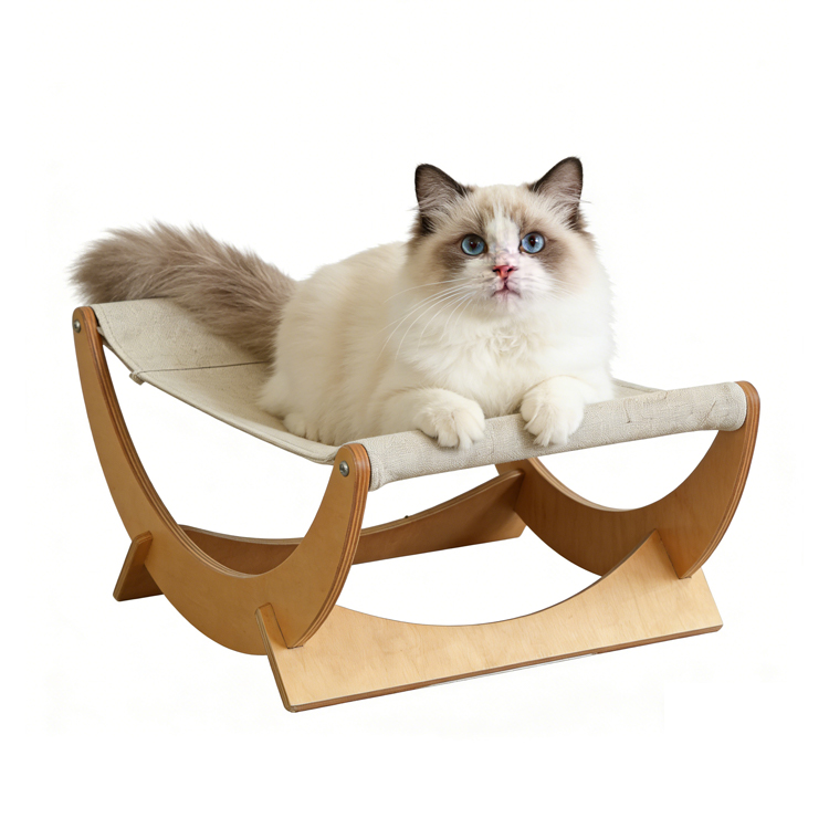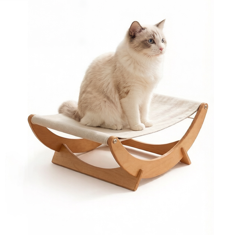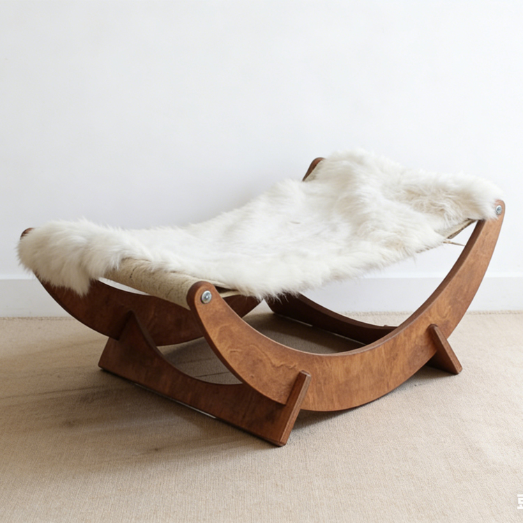 This Cat Swing Bed is crafted by our manufacturer, specializing in bulk order services for B2B partners. It offers flexible custom options for wood finishes and fur colors to meet diverse market needs. With a compact 56×42×16.5cm size, it blends comfort and minimalist style perfectly.