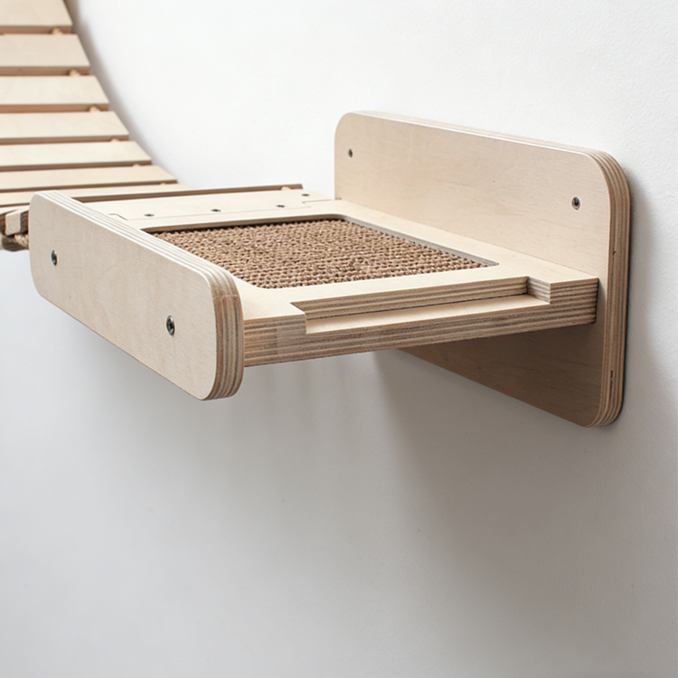 This Cat Wall Bridge is a modular wall-mounted system, ideal for creating a dynamic feline playground. It combines a suspended walkway with integrated sisal scratchers, perfect for climbing, lounging, and scratching. Crafted from durable plywood, this space-saving design is built for stability. We are a professional manufacturer offering competitive factory prices and support for bulk orders.