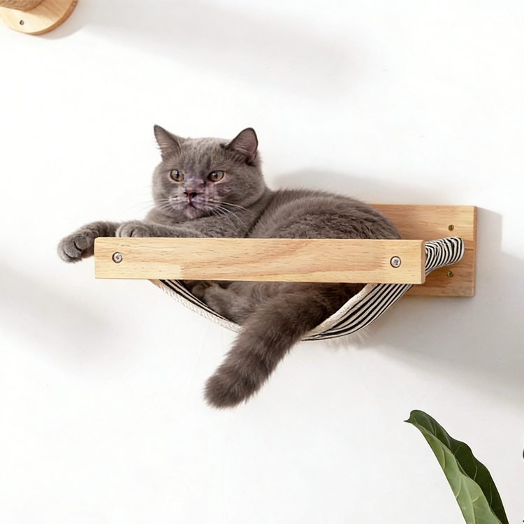 This Cat Wall Hammock is a space-saving solution that gives your cat a favorite perch. Made from natural pine wood, it installs securely on any wall, turning unused vertical space into a comfortable resting and observation spot for your cat. It supports cats up to 30 lbs and encourages healthy climbing behavior. As a professional manufacturer, we offer competitive factory prices and welcome bulk orders for this popular item, with OEM/ODM options available.