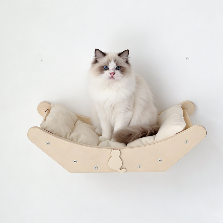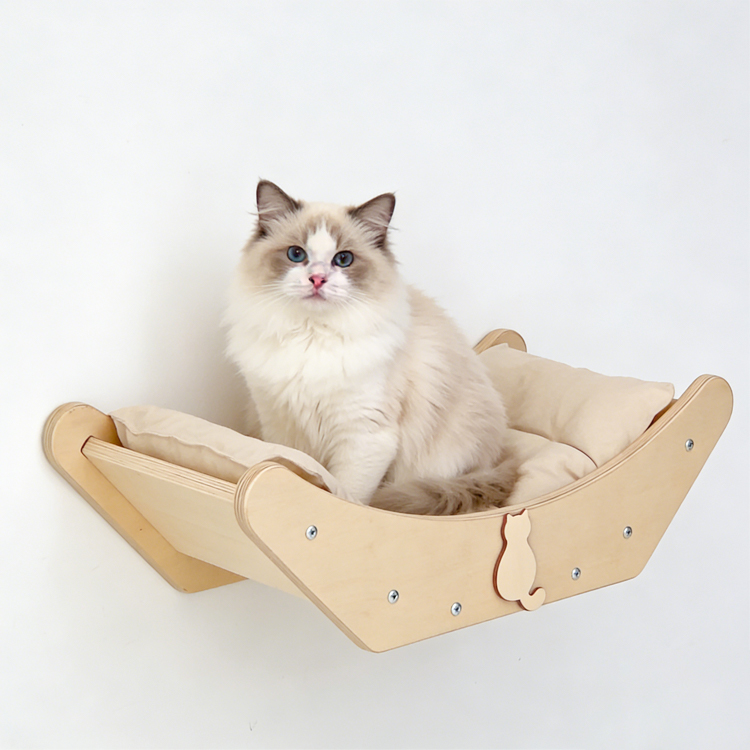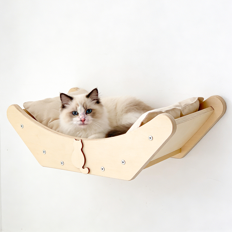 Provide cats with a secure and cozy retreat with this wall-mounted bed. As a professional manufacturer, we offer this durable plywood bed designed to satisfy a cat’s instinct for climbing and observing from a high vantage point. Its space-saving design makes it ideal for any home. We support OEM/ODM services and welcome bulk orders for this popular pet furniture item.