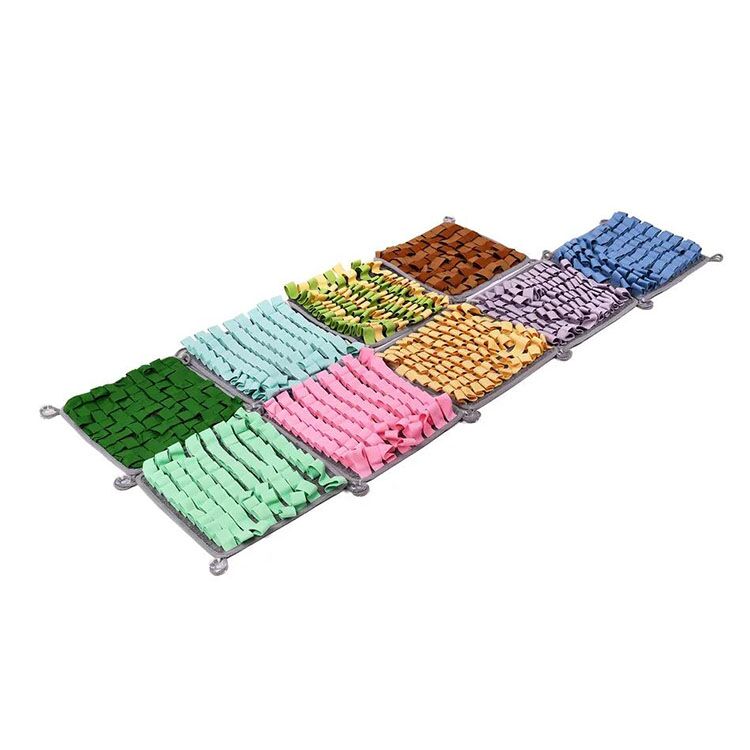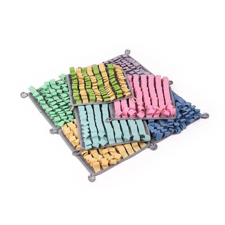 This Dog Feeding Mat Puzzle is an engaging enrichment toy designed to stimulate your pet’s mind. As a professional manufacturer, we offer this mat with factory price and support customization for bulk order clients. It encourages dogs to use their natural foraging instincts to find treats hidden within its soft polar fleece strands, promoting slower eating and mental exercise.