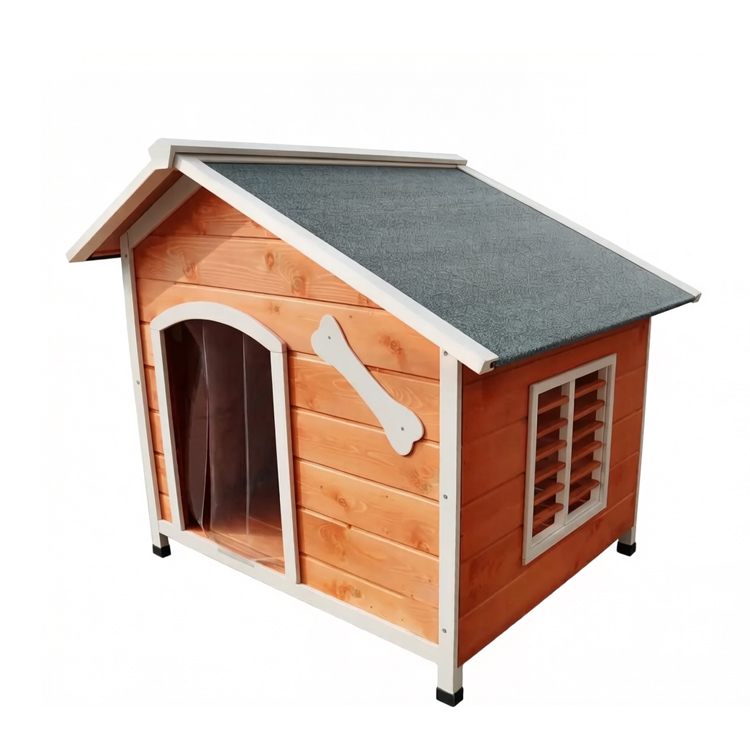 This Wood Dog House Outdoor is a durable and functional outdoor pet shelter designed to provide dogs with a comfortable, weather-protected resting space. Made from solid fir wood with a sloped asphalt shingle roof, it offers reliable protection from sun and rain while maintaining a classic, natural appearance suitable for most outdoor environments. The raised floor design enhances airflow and helps keep pets dry and comfortable in various weather conditions.