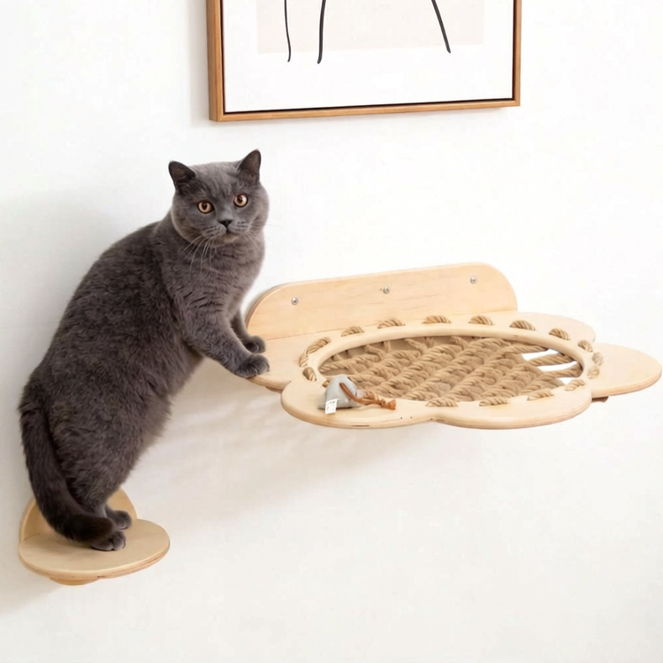 This Flower-Shape Floating Cat Bed is a space-saving wall-mounted solution that provides your feline friends with a comfortable perch and a dedicated scratching surface. Its charming floral design adds a decorative touch to any room while supporting cats’ natural instincts to climb, scratch, and rest at an elevation. As a professional manufacturer, we offer this product at competitive factory prices and welcome customization for bulk orders.