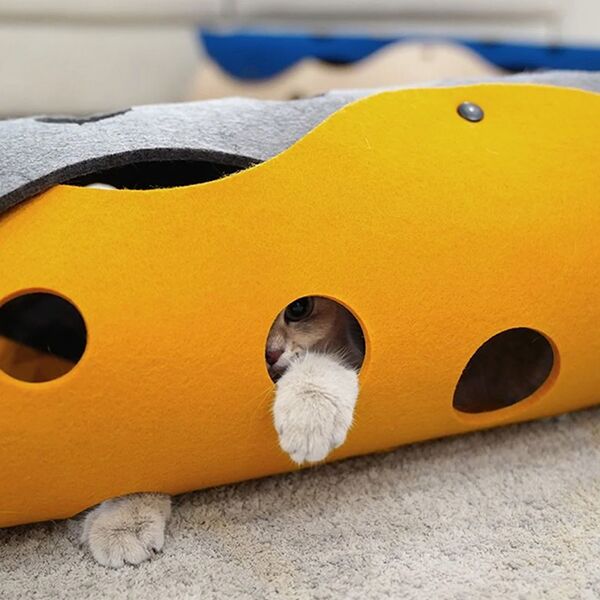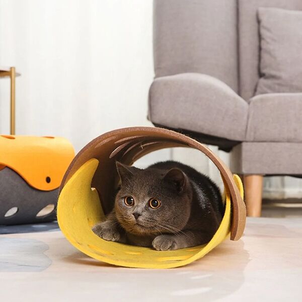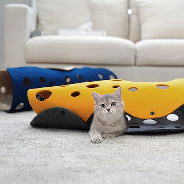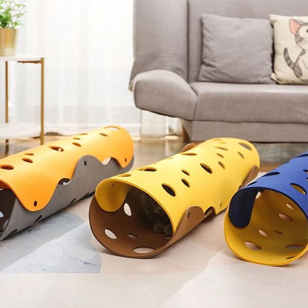 As professional cat furniture manufacturers, we supply wholesale pet tunnels with peek holes tailored for cats and small pets. This collapsible felt tunnel blends playfulness and practicality, serving as an ideal space for pets to play, exercise, and hide.