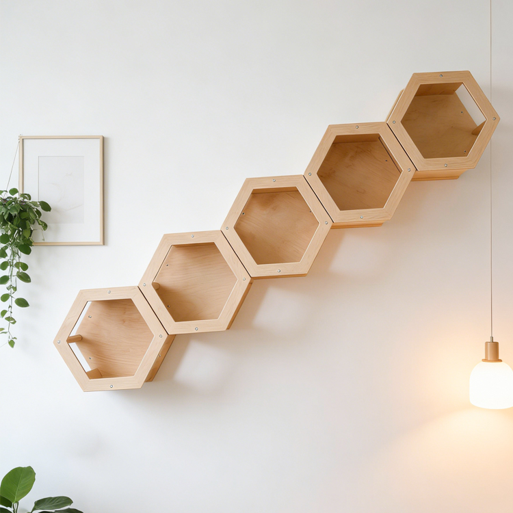 The Hexagonal Wooden Cat Bed is a wall-mounted cat house designed to create vertical living space for cats. Made from smooth natural wood, it combines resting, climbing, and observation areas in a compact hexagonal structure. This space-saving wall module helps enrich a cat’s daily activity while keeping floors clear, making it suitable for modern homes and pet-focused interiors. Ideal for wholesale and bulk supply, the design balances durability, safety, and visual appeal.