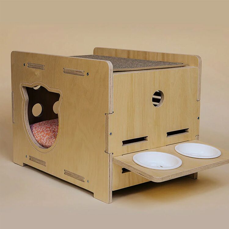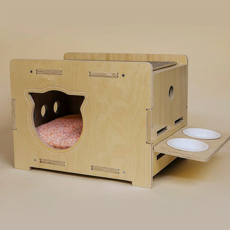 This Indoor Cat Raised Bed with Built-in Feeding Station is a multi-functional plywood piece designed for cats and small dogs. Measuring 540×380×380mm, it combines a cozy resting nook with an integrated feeding area. As a professional manufacturer, we offer this space-saving, eco-friendly unit for wholesale, with customization options to meet diverse needs. Its minimalist design blends seamlessly with modern interiors.
