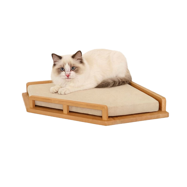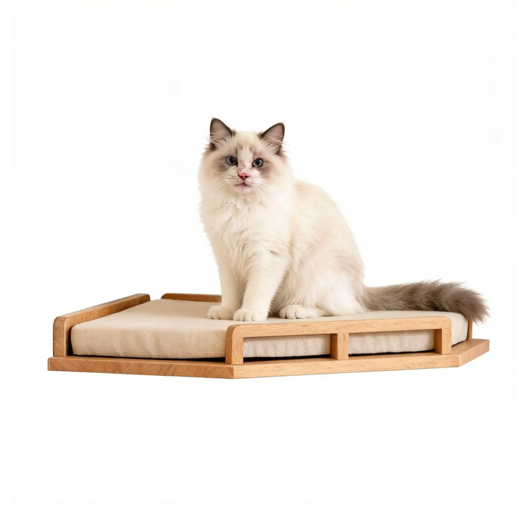 Provide your feline friend with a cozy retreat and playful perch with this modern cat wall shelf bed. As a professional supplier and manufacturer, we offer this space-saving solution designed for climbing and lounging. Mounted securely to your wall, it offers a comfortable elevated bed with a soft cushion. Its sturdy natural wood build blends seamlessly into home decor, and we welcome customization to meet specific needs.