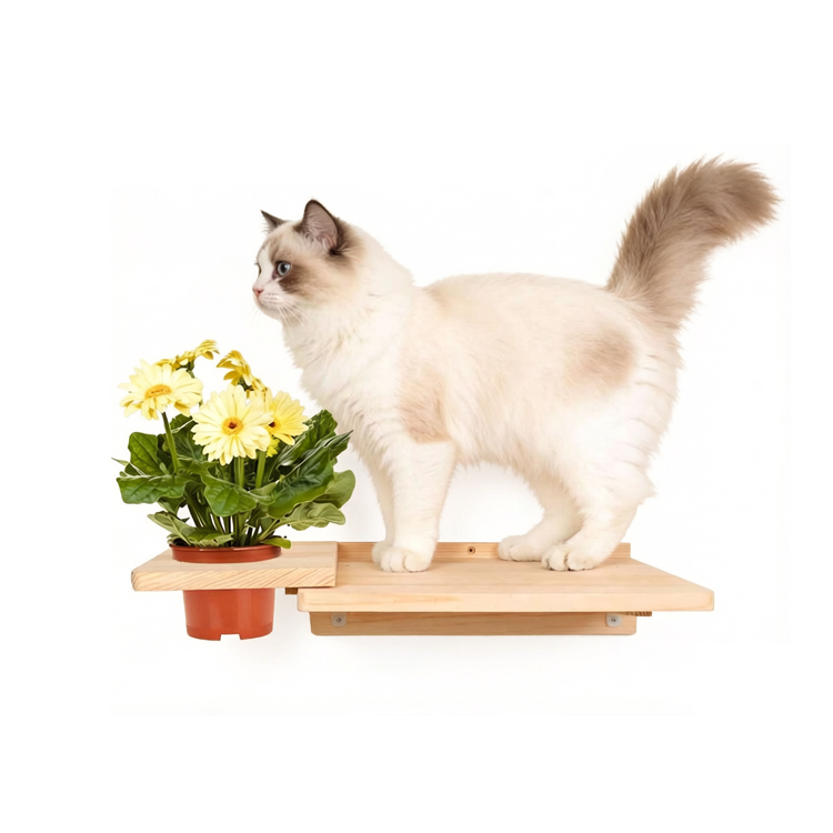 This wall-mounted Cat Bowl Shelf provides a dedicated and space-saving feeding station for your cat. It combines a secure feeding platform with a convenient storage tray for food or toys. Crafted from sturdy plywood, it offers a practical solution to keep your floors tidy and is ideal for bulk order and OEM/ODM projects, available at competitive factory price.