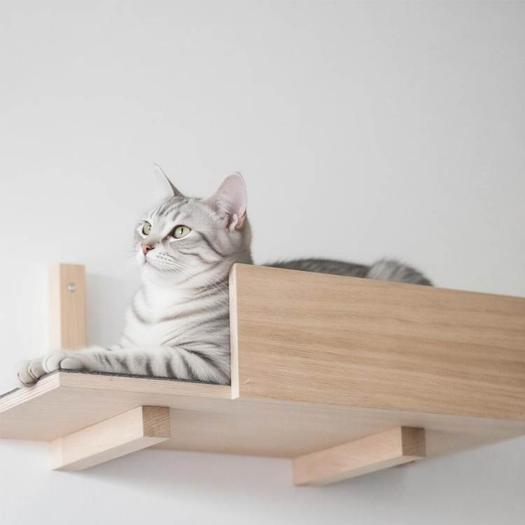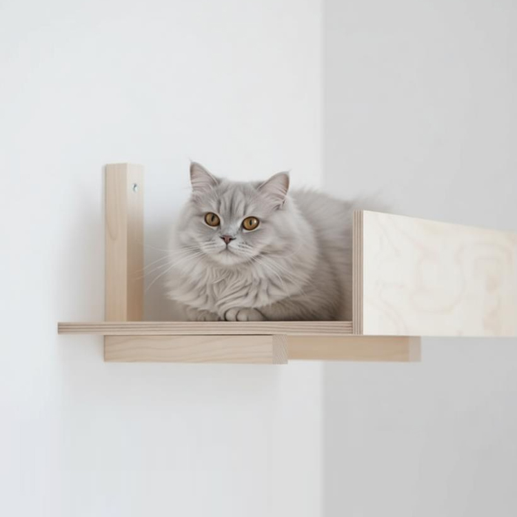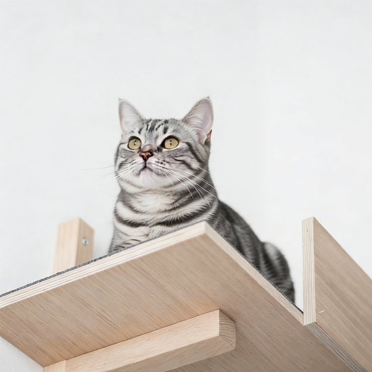 This wall-mounted cat perch offers a simple and functional space-saving solution for cat owners. Made from sturdy plywood, it provides a secure platform for your cat to climb, rest, and observe. Its clean, straight-edge design also works perfectly as a display shelf for home decor. As a reliable supplier, we offer competitive factory price and support bulk orders.
