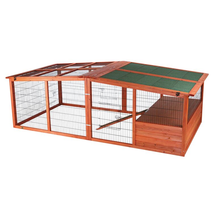 - Multi-Level Living Space: Includes an enclosed ground run, a covered shelter, and an upper platform connected by a non-slip ramp.