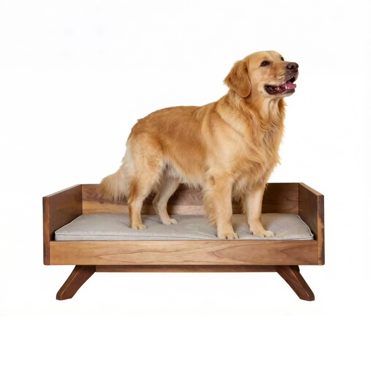 This Sofa Style Dog Bed merges modern furniture aesthetics with practical pet comfort. Designed as an elevated wooden bed, it features a sturdy frame and a plush, removable cushion. Ideal for wholesale partners and bulk orders, we support OEM/ODM customization to match various market needs. Its clean, contemporary design integrates seamlessly into home interiors while providing durable, cozy resting space for pets.