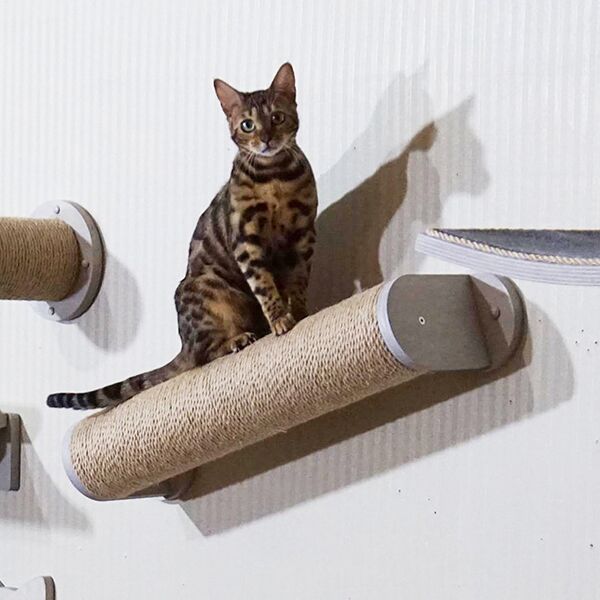 This vertical wall-mounted cat scratching post is designed to provide a durable and space-saving solution for cats to sharpen their claws. Crafted with natural sisal fiber, it mimics the texture of tree bark, appealing to a cat’s instinct to scratch. Available in customizable lengths and neutral colors (White, Walnut, Rosewood, Wenge, or Clear), it seamlessly integrates into any home décor. Ideal for small to giant-sized cats, it can be used as a standalone scratching post or combined with larger cat complexes for vertical climbing.